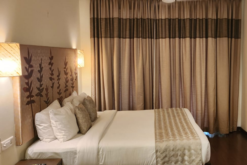 “It’s a spacious facility, food is good. But geyser in room was not working… health faucet leaking, also no mobile signal, landline was not working… had to walk up to reception to ask anything.”